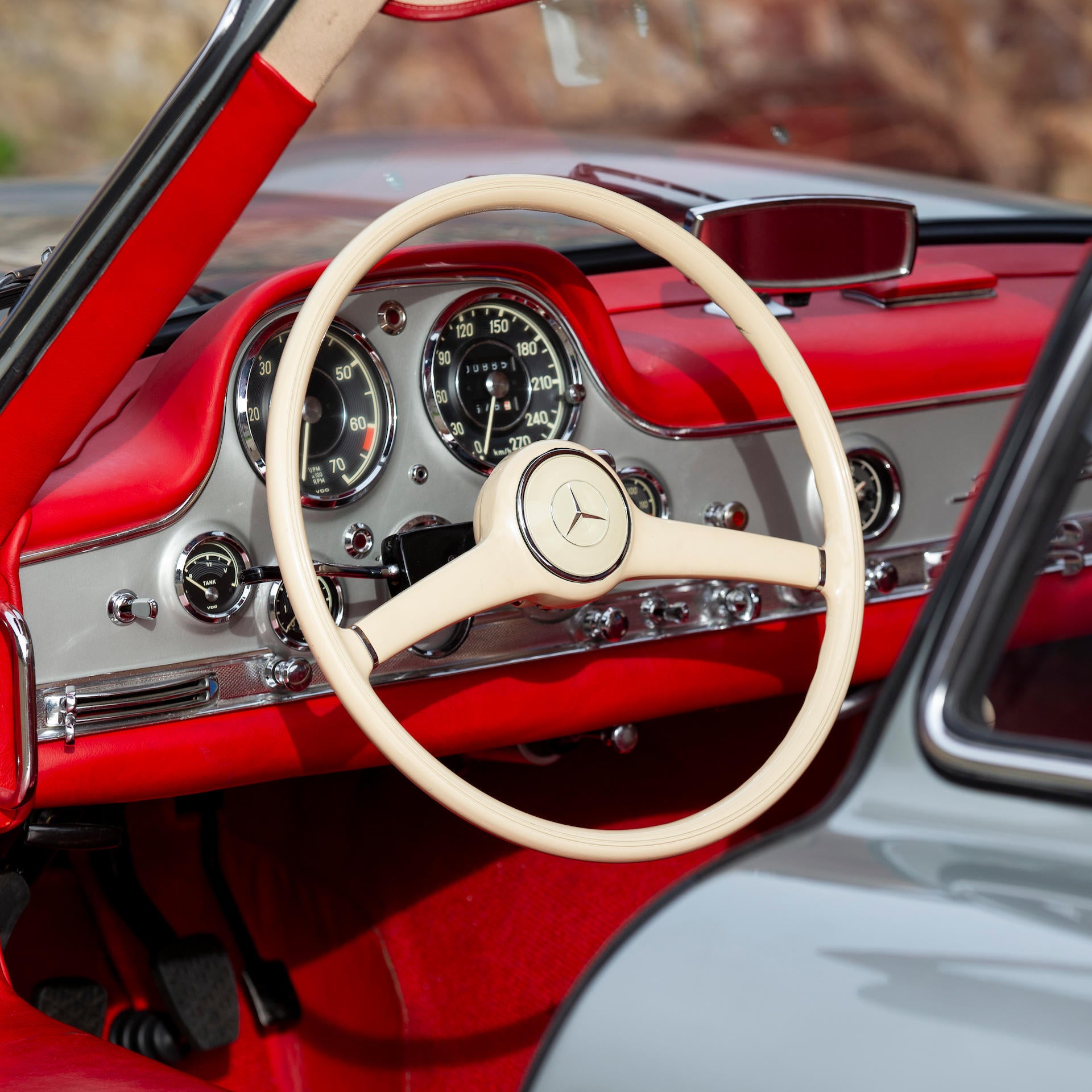 • Due to 300SL owners having difficulty getting in and out of the vehicle, Mercedes later enabled the steering wheel to tilt 90 degrees with the help of a pin. This provided a more spacious environment when entering the vehicle.